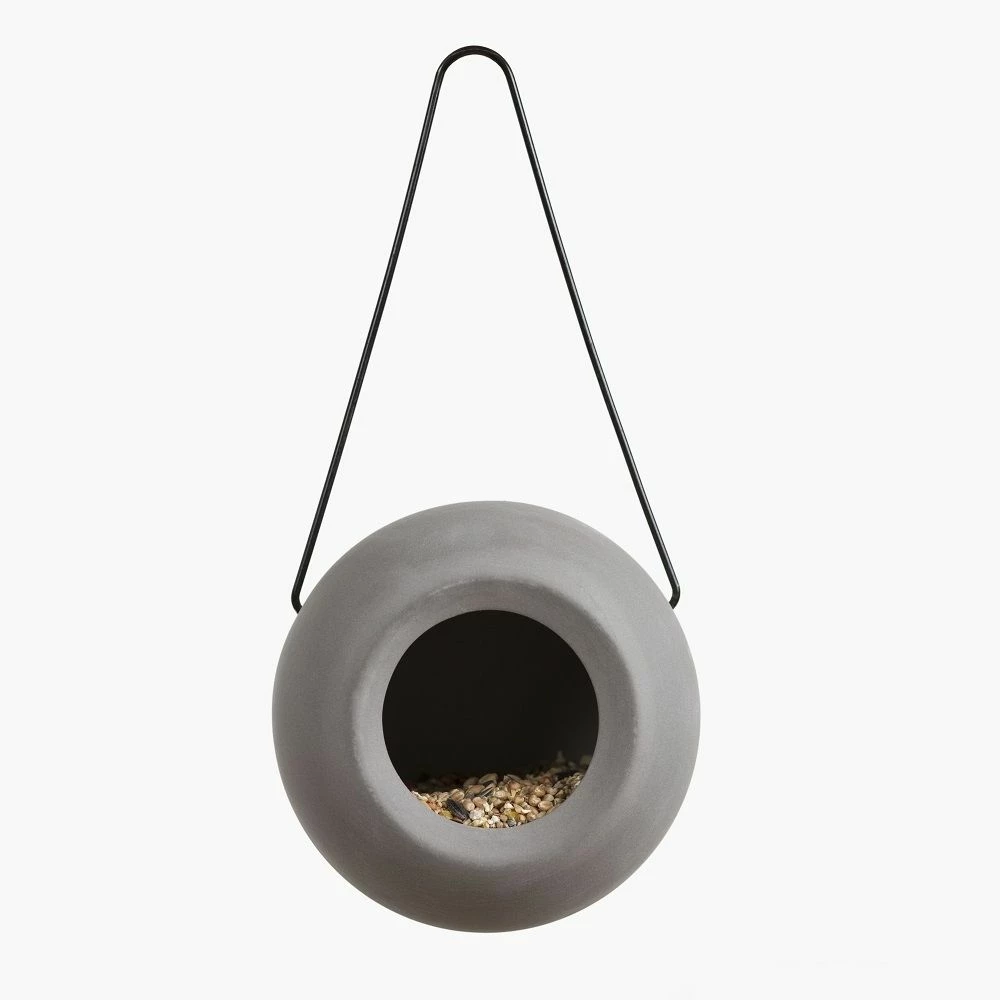 Mithilfe der Metallschlaufe hängen Sie dieses Futtersystem aus stabiler Keramik einfach in Ihrem Garten oder auf Ihrem Balkon auf.