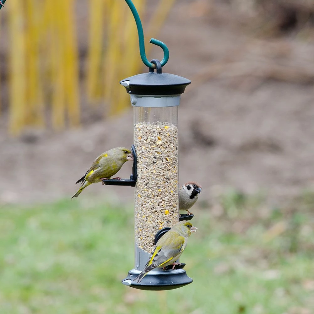 Diese Futtersäule wurde so gestaltet, dass Du Deine Gartenvögel besonders bequem und sicher füttern kannst. Durch das ausgeklügelte „Click & Go“-System lassen sich Boden, Deckel und Öffnungseinfassungen ganz einfach lösen. So kannst Du die Säule im Handumdrehen und ohne Spezialgeräte demontieren, reinigen, zusammenbauen und füllen. Ebenfalls praktisch: das Belüftungssystem im Deckel. Damit wird einer Kondensation innerhalb der Futtersäule vorgebeugt, und das Futter bleibt länger frisch.