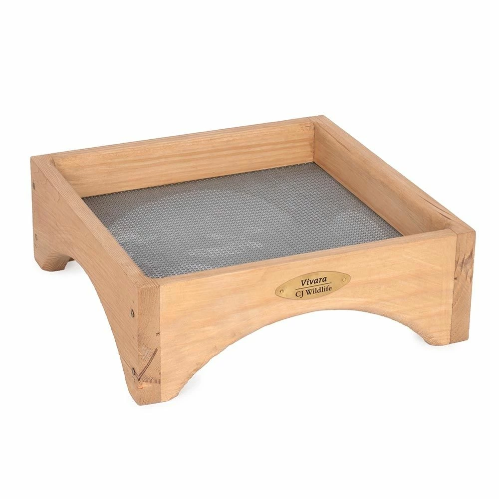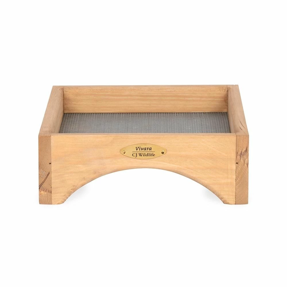 Der Futtertisch „Kandava“ ist ein stabiler Futtertisch aus Holz. Mit seinen dekorativen Rundungen und rund gefrästen Kanten ist der „Kandava“ sehr ansprechend verarbeitet. Der Boden besteht aus einem robusten, feinmaschigen Drahtgeflecht. Dadurch wird das Wasser schnell abgeleitet und bleibt das Futter frisch.
