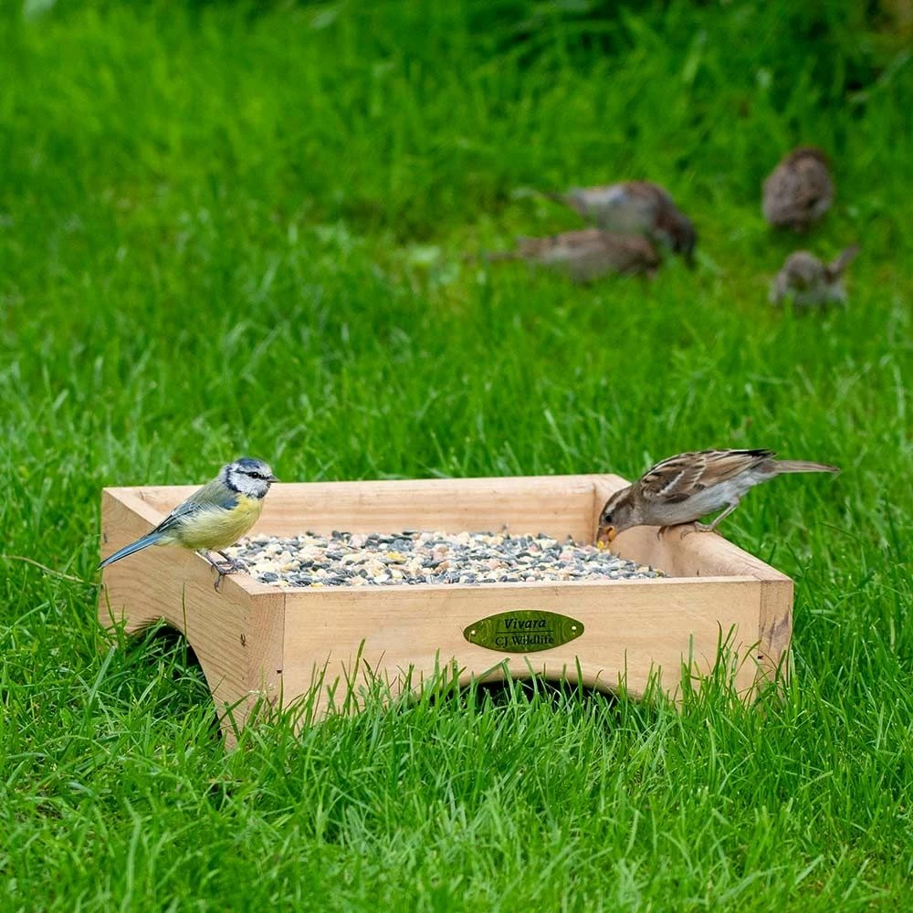 Wenn Sie für die Vogelfütterung einen Futtertisch verwenden, helfen Sie den Bodenfressern. Auch bleibt Ihr Garten auf diese Weise unkrautfrei. Das ist schwieriger, wenn Sie das Futter direkt auf den Boden streuen.