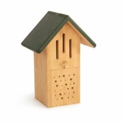 Dieses Bienenhotel wurde speziell entwickelt, um verschiedenen Insektenarten Unterschlupf zu bieten – ein Muss in jedem tierfreundlichen Garten. In den Tannenzapfen und losen Holzstückchen werden sich vor allem kleine Spinnen und Insekten wie Marienkäfer und Ohrwürmer einnisten. Die unterschiedlichen Röhrchen bieten Solitärbienen einen idealen Platz für die Eiablage.
