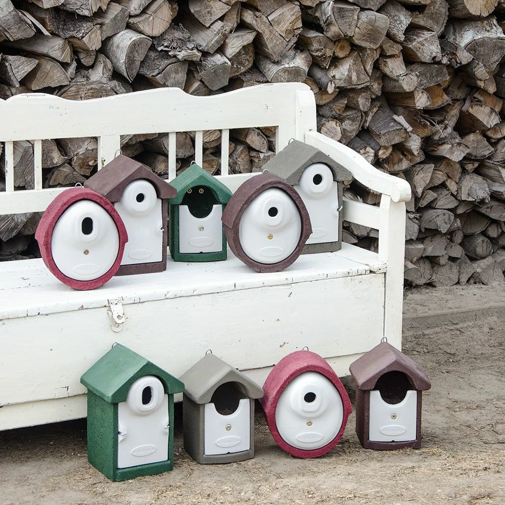Der halboffene Nistkasten “Barcelona“ ist für Rotkehlchen, Zaunkönige, Stelzen und Grauschnäpper geeignet. Außer den genannten Vogelarten zählen manchmal auch Amseln, Garten- und Hausrotschwänze zu den möglichen Bewohnern. Dieser Nistkasten aus WoodStone bzw. Holzbeton, einer speziellen Mischung aus Beton und Holzfasern, ist besonders isoliert und atmungsaktiv. In den Wintermonaten schützt das Material gegen Kälte, im Sommer verhindert es Überhitzung. Die konstante Temperatur im Kasten erhöht zudem die Überlebenschancen der Jungvögel erheblich.