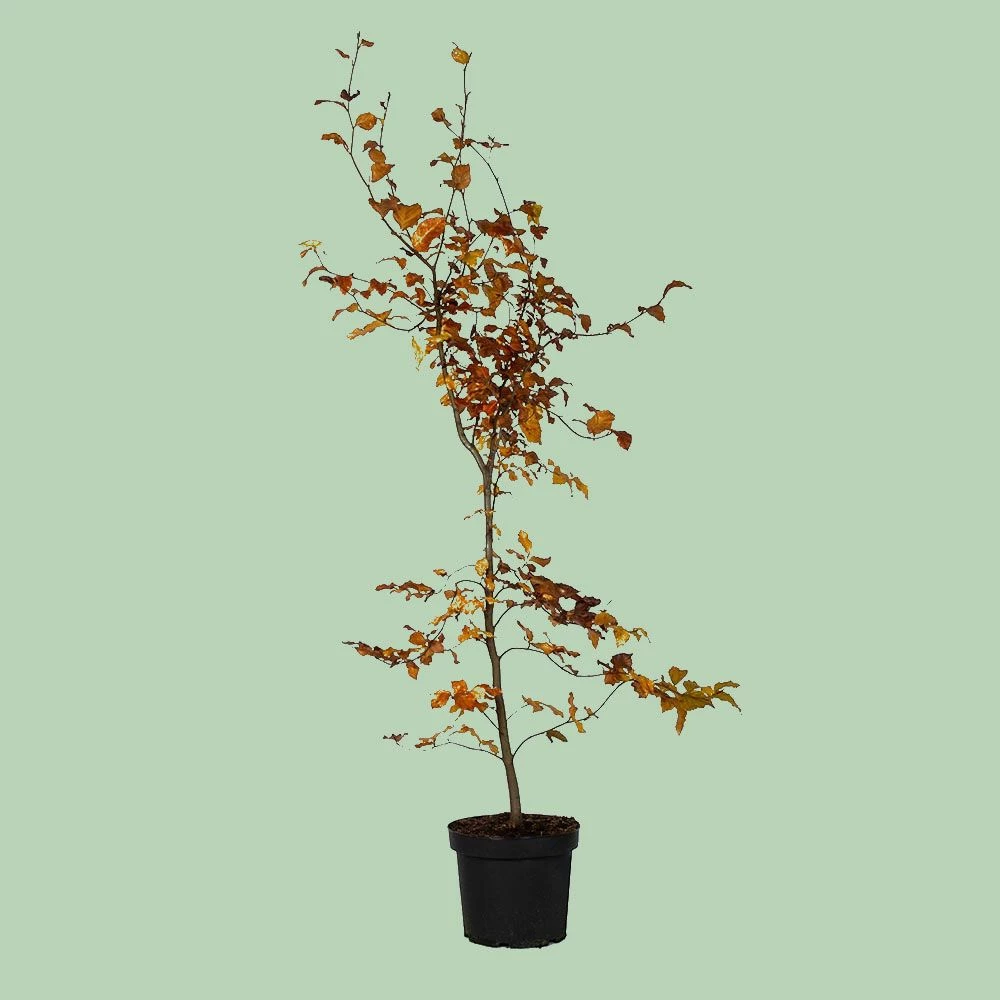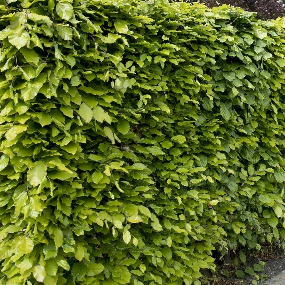 Die dekorative Rotbuche ist eine ganzjährig blickdichte Laubhecke und deshalb bei vielen beliebt. Die frisch-grünen Blätter verfärben sich im Herbst orangerot und dann braun, der Großteil der Blätter verbleibt auch im Winter an der Pflanze. Sie werden erst abgeworfen, wenn im Frühjahr die frischen Triebe sprießen.